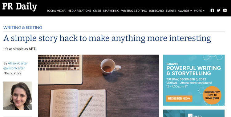 PR DAILY EDITOR Touts the StoryHack That you will learn to craft your personal narrative